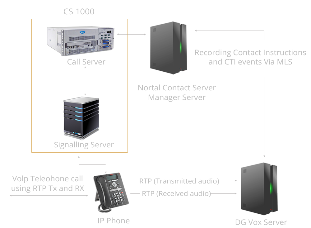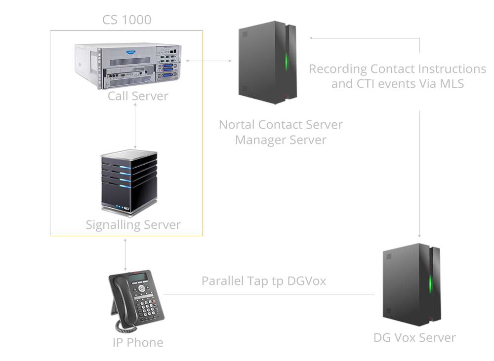 DGVox is compliant with Avaya® CS1000 Digital and IP extensions. For recording digital extensions, DGVox uses parallel tapping and voice recording is done using a CTI board.