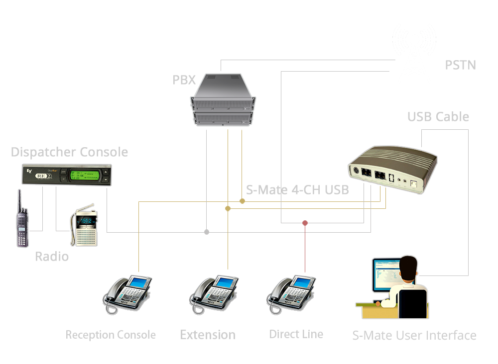 S-Mate is the latest Analog Voice logger from SpeechLogix with 2 port and 4 Port options. It has a USB interface for plugging in to any windows based PC. Easy and user friendly S-Mate software provided with the S-Mate Device does have provision for analysis of call related information , Real time call monitoring, Search and Play back etc. S-Mate is a very lightweight device with less than 200gms. The installation of S-Mate can be done very easily on any system with Windows operating system. S-Mate can be used to record Analog trunk lines, Analog extensions and Radios.