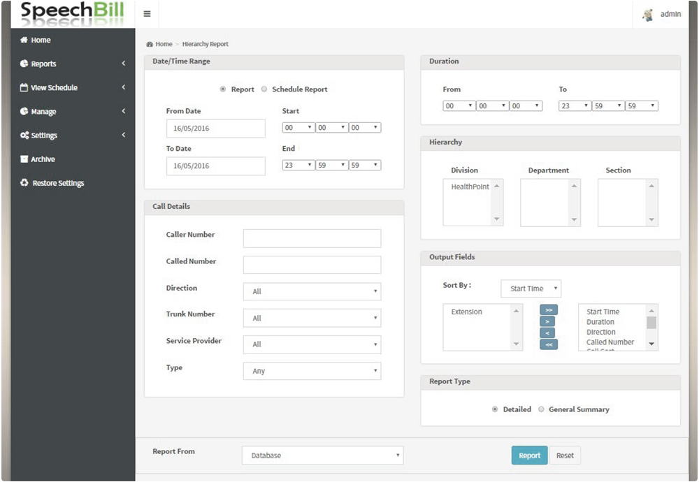 SpeechBill is packed with all the features to ensure that the easy tracking and analysis of calls and also the costing of the calls , allocation of call costing etc are possible. SpeechBill web based interface and the reporting engine is designed in the most user friendly and responsive manner in order to ensure easy access and compatibility with all platforms and browsers. SpeechBill is available in 2 editions , Standard Edition and Professional Edition. Standard edition is meant for Small medium enterprises with single office or locations. Professional Edition is meant for Enterprises having multiple branch offices and require centralized call cost and details administration.